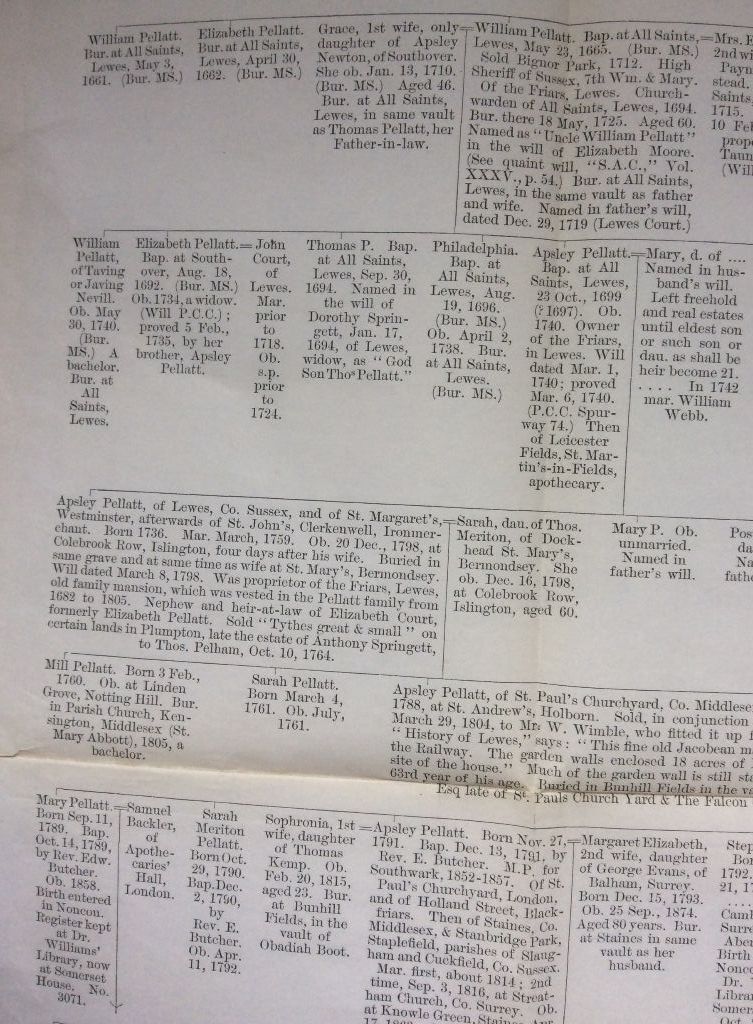 Apsley Pellatt II – death and Will: The following text is taken from the online record of ‘Deeds of 9 Friars Walk, Lewes’ (ESX 21359) on the Sussex Record Office website   https://www.thekeep.info/collections/getrecord/GB179_AMS6346_1-32